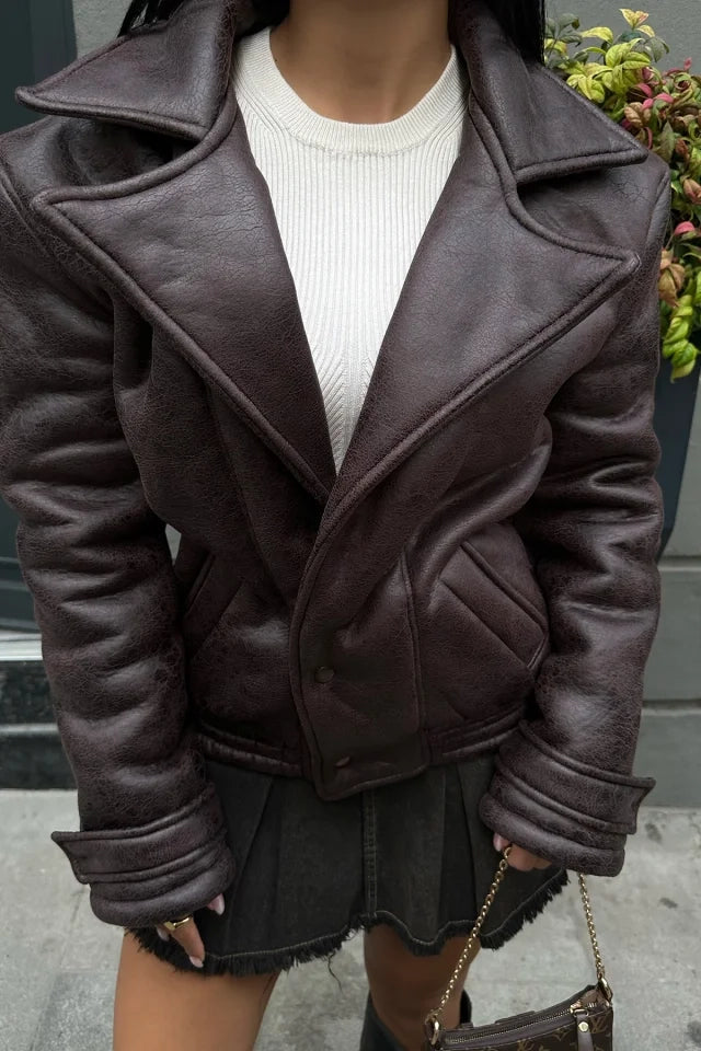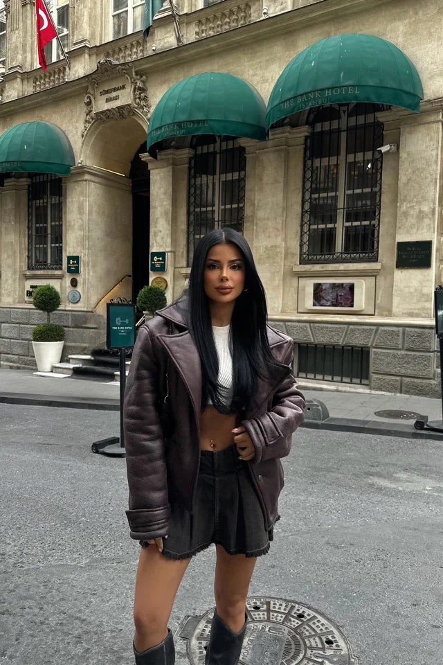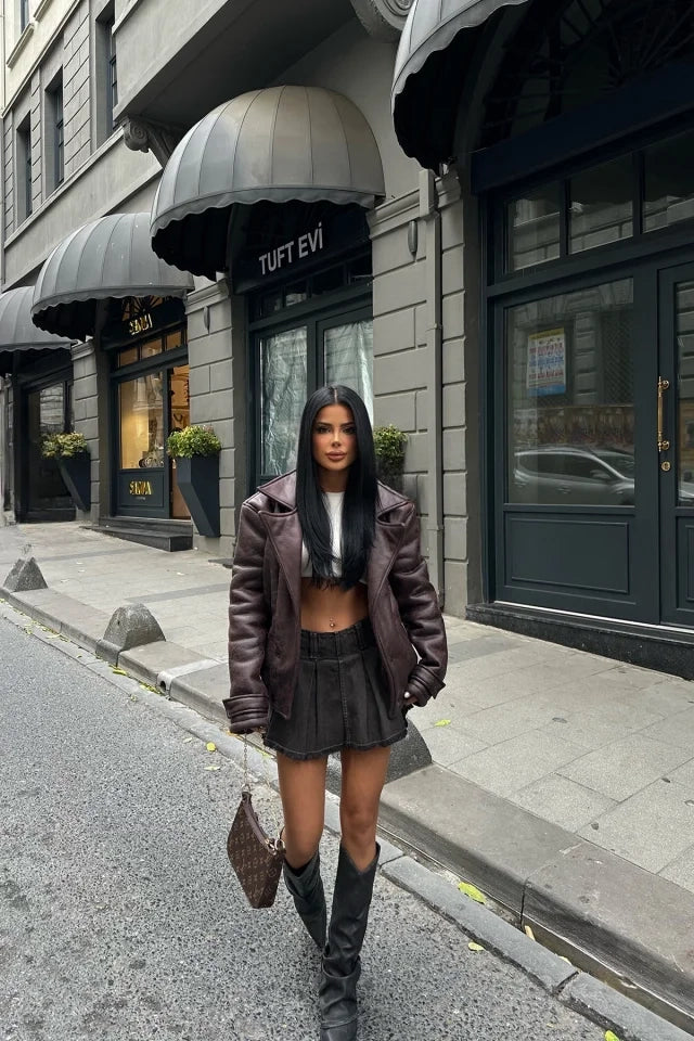 Bitter Brown Pocket Detail Leather Jacket *IT HAS FUR INSIDE *TWOED LEATHER OUTSIDE *WAIST GUPPED ELASTIC DETAIL Size S is used in the image Jacket Length:50Cm Chest:63Cm Model Measurements Height: 160 Weight: 50 Chest: 80 Waist: 62 Hip: 94