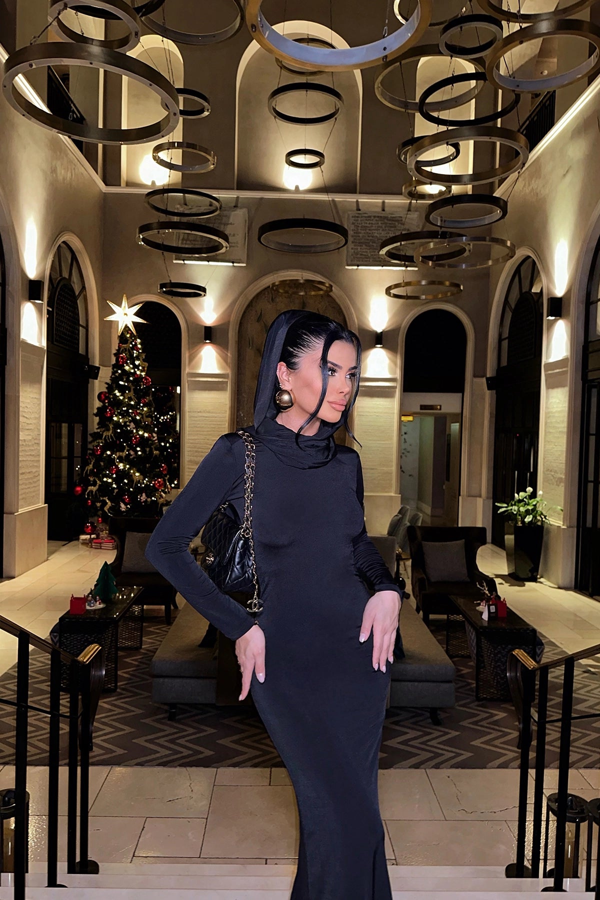 Black Basic Long Dress Size S is used in the image. Made from Sandy Fabric Dress Length: 148cm Bust: 36cm Model Measurements Height: 160 Weight: 50 Chest: 80 Waist: 62 Hip: 94
