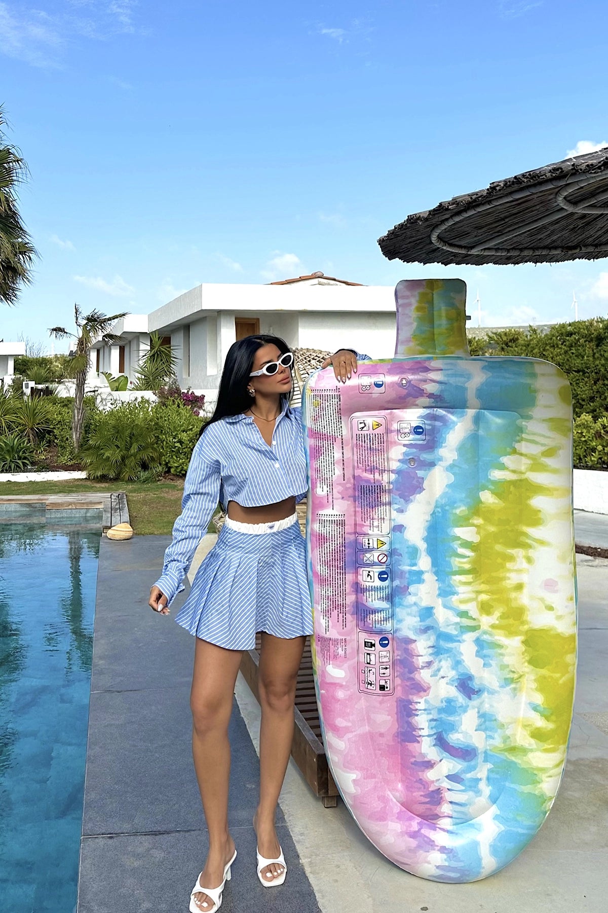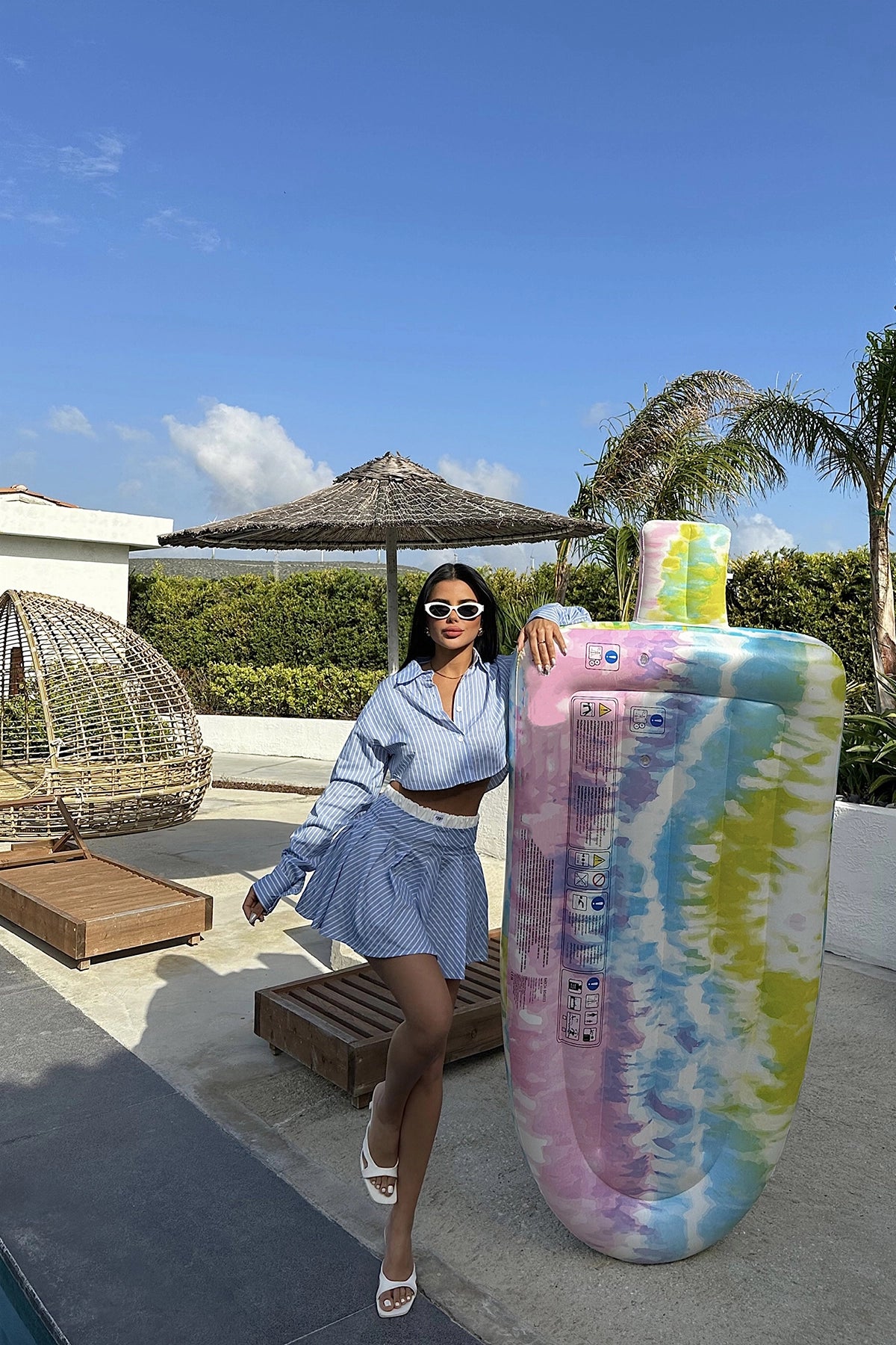 Blue Camile Striped Suit Made from poplin fabric. Size S is used in the image. Suit Top length: 40 cm, Chest: 50 cm, Shoulder: 48 cm, Bottom length: 36cm, Waist: 30 cm Model Measurements Height: 160 Weight: 50 Chest: 80 Waist: 62 Hip: 94