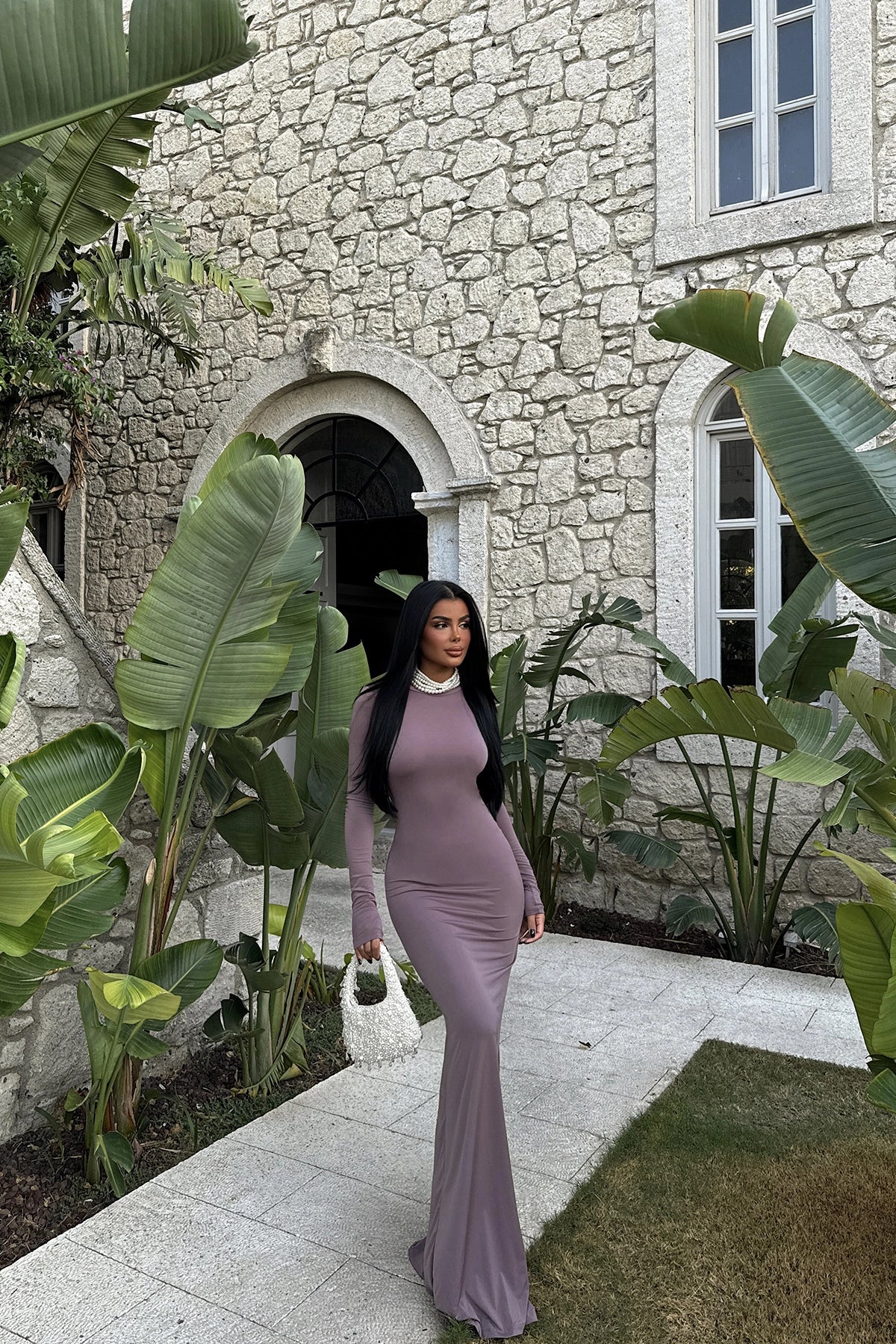 Dried Rose Doss Long Backless Dress Size XS is used in the image. Made from Sandy Fabric. Dress Length: 154 Cm Waist: 27 Cm Bust: 30 Cm Model Measurements Height 158 ​​Weight 52 Chest 80 Waist 62 Hip 93