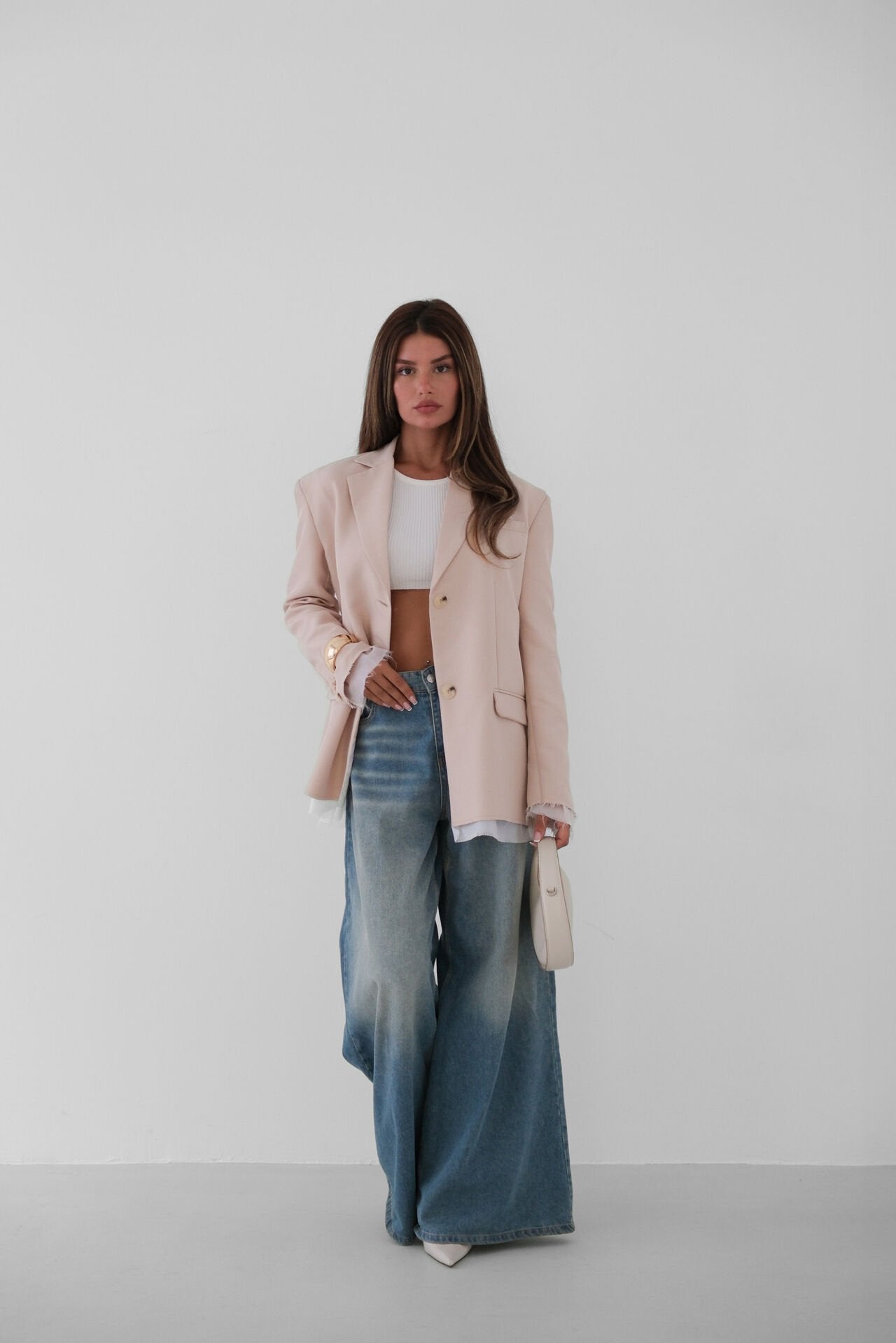 Lining Detail Padded Beige Blazer