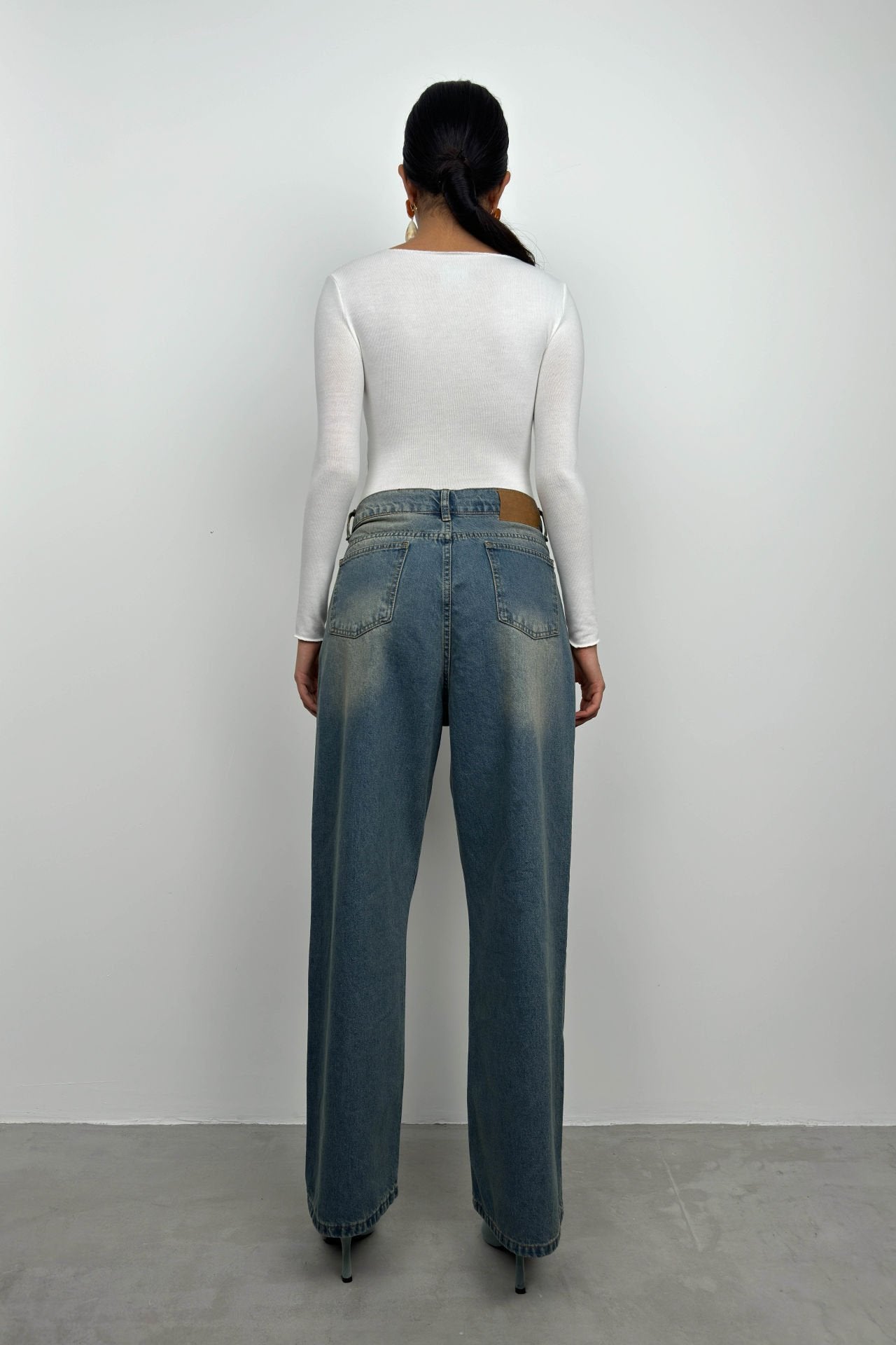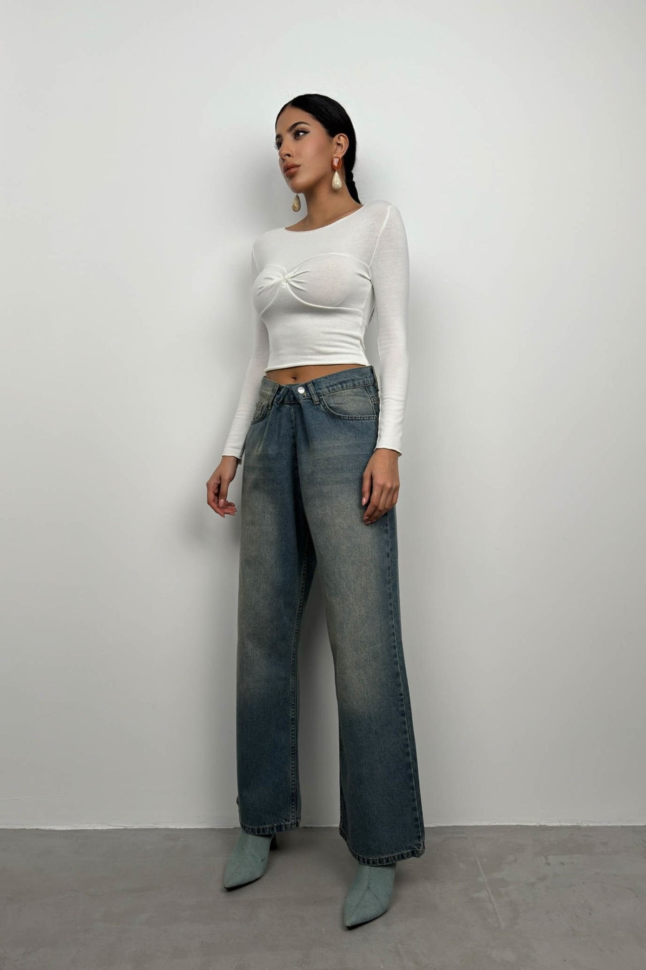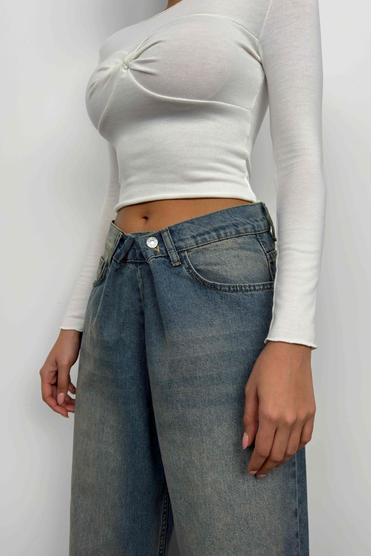 Low Waist Double Button Blue Wide Leg Jean